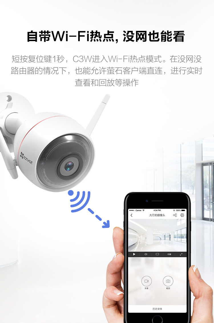 螢石C3Wi 200萬超清全彩AI雙向語音通話無線監(jiān)控攝像頭