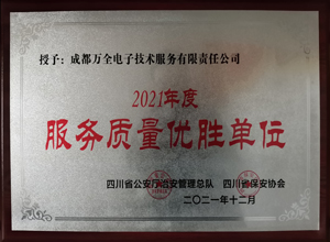 熱烈慶祝成都萬全電子榮獲2021年度“服務(wù)質(zhì)量?jī)?yōu)勝單位”稱號(hào)